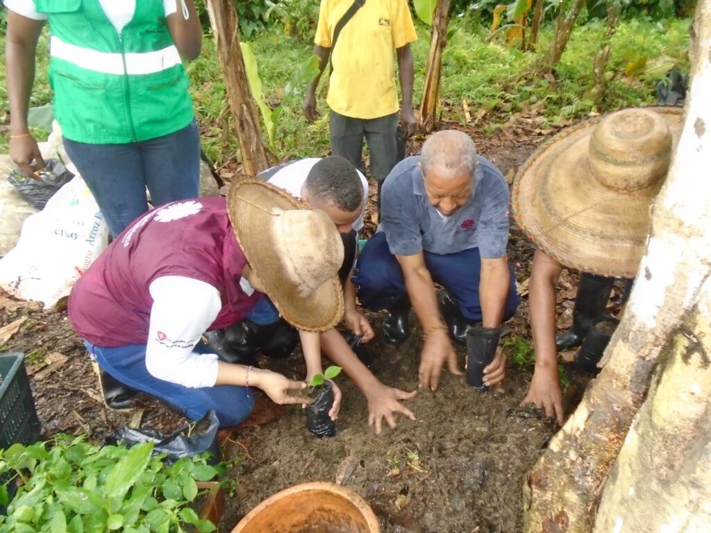 Con la participación de una agrónoma del trópico húmedo e integrantes de la fundación ARIBI, se adelantó el establecimiento de una parcela de una hectárea con enfoque agroforestal y agroecológico, en la que se sembraron diversidad de plántulas: musáceas, frutales, condimentarías y 4 talleres, 1. Sobre distancias de siembra y control biológico para el dialogo intergeneracional y la trasmisión del conocimiento ancestral, 2. Sobre abono orgánico y caldos biológicos para el control de insectos 3. Taller de resolución pacífica de conflictos y 4 Taller de participación organizativa y cultura de la no violencia.